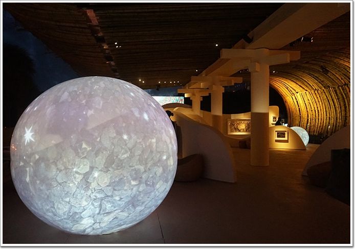 球形燈光投影裝置作品穿插出現在展覽空間里