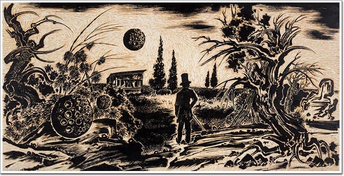 動畫影片中各式各樣的木刻版畫在展館內隨處可見