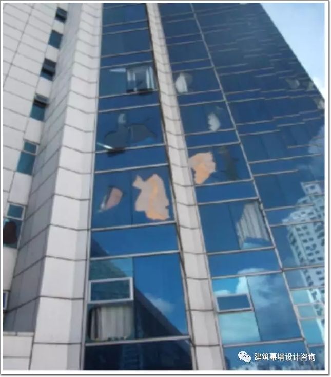 ⊙臺(tái)風(fēng)破壞玻璃面板的表現(xiàn)特征