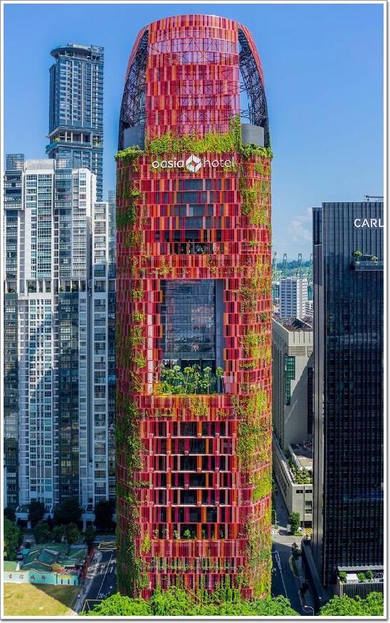當中國幕墻網ALwindoor.com小編看到新加坡Oasia Hotel(綠洲酒店)的時候,下巴都差點驚掉了,怎么可以這么美呢?它完全顛覆了傳統的審美和制法,與有著光滑外皮的玻璃幕墻和封閉型的摩天大樓不同,這種熱帶的“活力塔”為流派的時尚技術提供了另一種形象和設計新思路,火辣辣的外皮和郁郁蔥蔥的植物實在太具有殺傷力,小編也忍不住想去新加坡走一趟了。