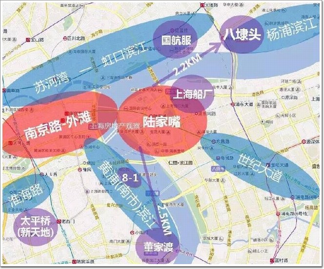 眾所周知,上海的中心是以外灘陸家嘴為核心的金融中心,以外灘陸家嘴為核心的黃浦江沿岸是上海的金融城所在,也是上海超級地王的輩出之地。