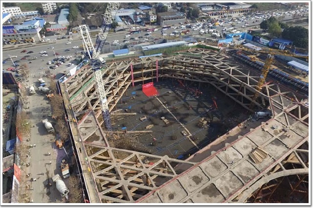 “澆注開始”,一聲令下,混凝土從泵管中奔涌而出,130輛混凝土罐車來回接力澆筑,兩百余名施工人員有條不紊干得熱火朝天。底板澆筑是地下室結(jié)構(gòu)施工的第一步,這也標(biāo)志著西部第一高樓綠地468項目正式開始“長個子”,中建三局負(fù)責(zé)人告訴記者,項目地下室預(yù)計在2016年7月正式?jīng)_出地面,此后將開始地上主體拔高階段,預(yù)計在2017年4月達(dá)到100米,在2018年5月超越成都電視塔的339米刷新成都高度,并最終在2019年末以101層、468米的偉岸身姿成為“西部第一高樓”。