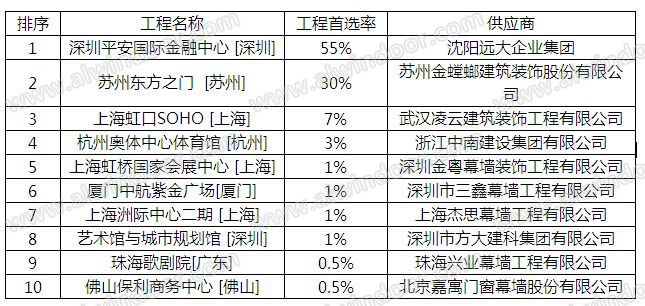 幕墻工程商企業品牌首選率