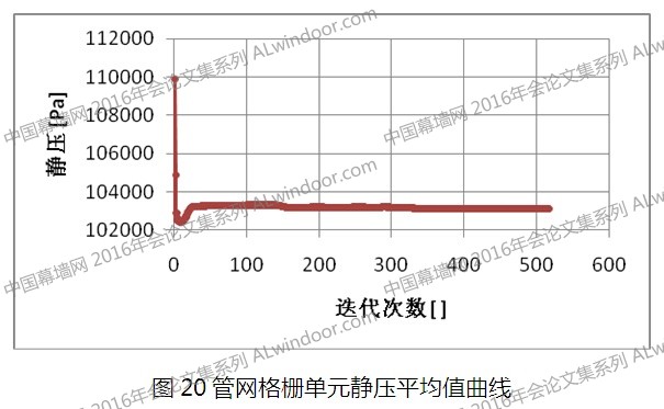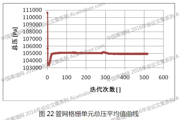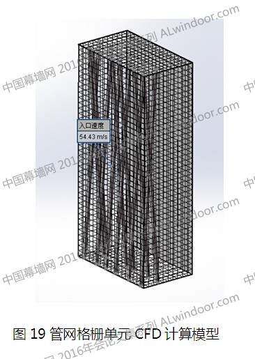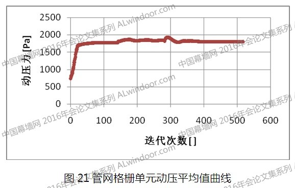 由計算結果可得,在湍流作用下,其管網格柵單元體內部的風速有一定放大,并影響格柵鋼管及背部玻璃幕墻表面的受力。管網格柵的CFD分析所得其計算區(qū)域內動壓平均值達到,小于前文按規(guī)范所得的