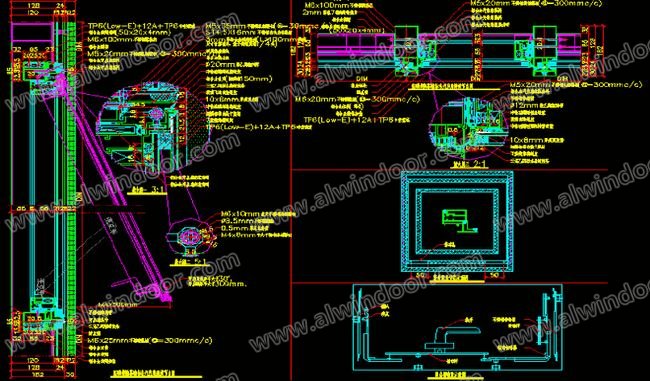 3)防火分區位置的防火(玻璃幕墻作為防火窗時不能采用鋁龍骨(詞條“龍骨”由行業大百科提供)支撐)