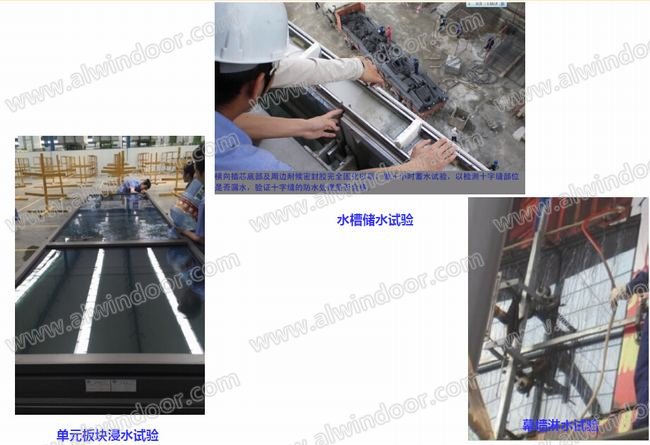 試驗措施:幕墻三性試驗、單元板(詞條“單元板”由行業大百科提供)塊浸水試驗、水槽儲水試驗、幕墻淋水試驗。