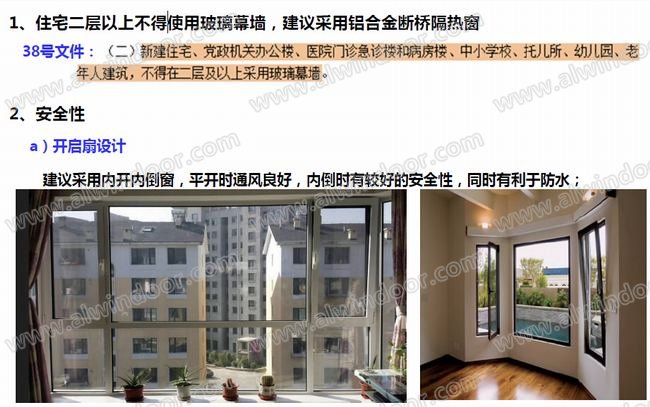 1、二層以上部位禁止使用玻璃幕墻,建議采用鋁合金斷橋隔熱窗(詞條“斷橋隔熱窗”由行業(yè)大百科提供)