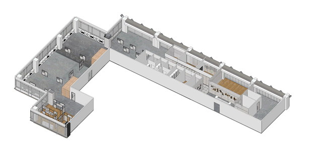 設計師習慣把任何建筑和室內設計看成一個世界的重構,原本試圖在這個740平米的空間中創(chuàng)造一種雖在室內但宛如置身園林的場景。不過公司負責人是個居住北京多年的北歐人,盡管對中國藝術有一定研究,但更傾向一種極簡主義的表達。