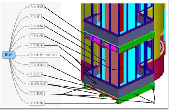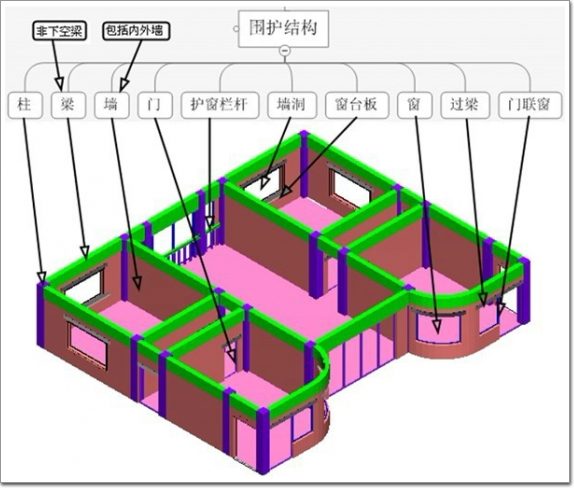 其中飄窗、坡道、臺階、陽臺、雨篷、挑檐屬于復合構件,需要再進行細分,直分到能算量為止。