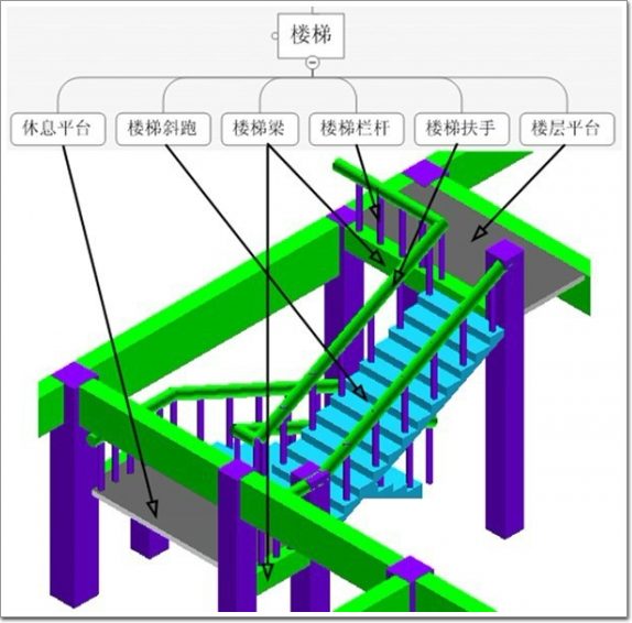 1.樓梯構件細分 樓梯包含的構件類別見圖3.4: