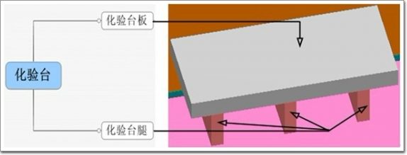 首層室內結構包含的構件可能有:講臺、樓梯、室內獨立柱、水池、化驗臺等占室內空間的構件,見圖3.3:
