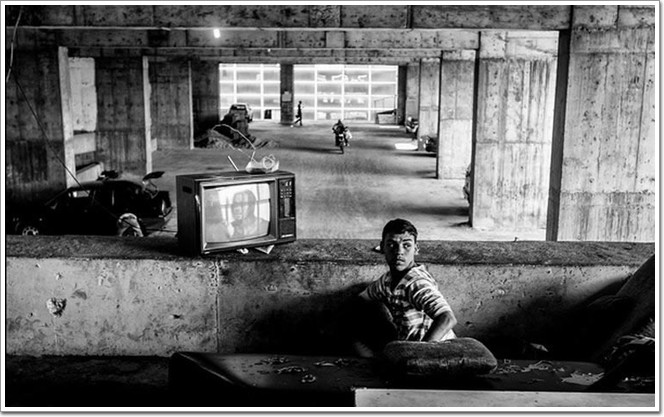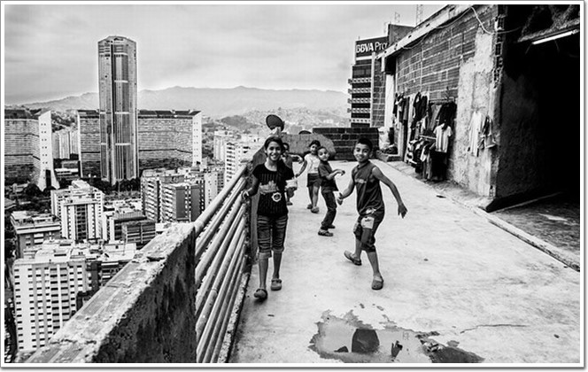 圖為,一群貧困孩子正在頂樓肆無忌憚的玩耍,這是他們每天游戲的地點。雖然環境很一般但是在這里,風景確實很好,而且也很少有人管。