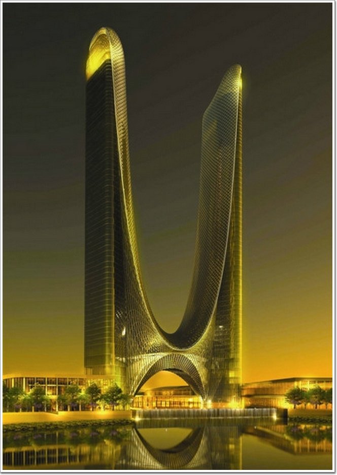 “綠地·城市之門”項目位于杭州奧體博覽城,東至杭州國際博覽中心,南至奔競大道,西至綜合訓練館,北至七甲河。項目集企業總部、綜合商務、超五星級賓館、精品商場等功能為一體,并與兩個地鐵上蓋物業的五幢高樓,形成“北斗七星”態勢,與江對岸錢江新城的“日月同輝”建筑遙相呼應。“綠地·城市之門”主體建筑呈雙塔形狀,雙塔展翅的造型源自杭州城市拼音第一個字母H,寓意城市騰飛、和諧美好。