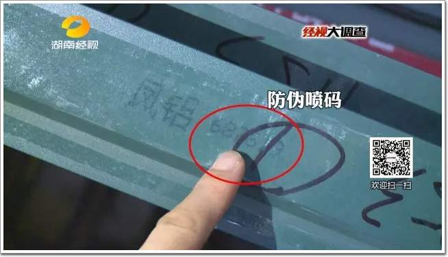 除了上面貼著的品牌薄膜外,一般鋁材身上還會印有防偽噴碼。