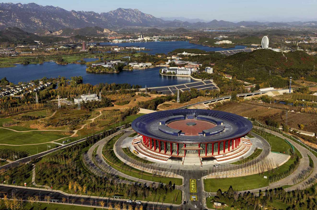 本次會議特別選在美麗的雁棲湖,讓世界聚焦,也讓世界看到了北京的綠色。雁棲湖,地處懷柔的祥和之地,風景秀美,生態和諧。雁棲湖的環境、建筑、能源等各個方面,始終以低碳、自然生態、節能環保為發展理念和標準。