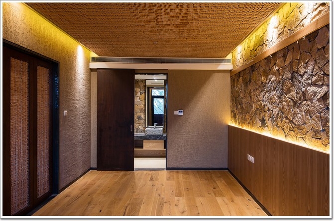 除了以上功能,在中庭的東側設計了一處戲臺,更準確的說是一座現代戲臺,靈感來源于業主的家鄉——山西。戲臺可用來表演、展示、集會演講等等,因為它的正負標高(詞條“標高”由行業大百科提供)高于中庭地面高度,地勢上自然而然成為了中庭的焦點中心。戲臺下方懸空,設計了鏡面水池,再堅固的房子也需要柔情的物質來軟化,水便成為中庭的重要元素。東西兩側的鏡面水池可常年有水,因為20公分深度的淺水可以循環使用。