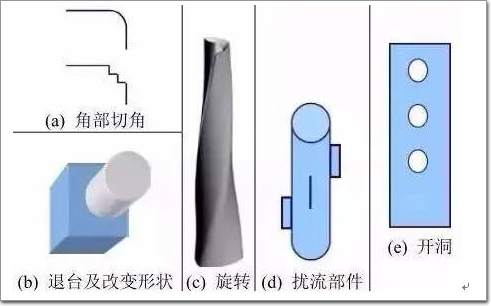 一般的方案修改建議和抗風(fēng)措施包括,對建筑表面進(jìn)行處理(如表面增加豎條以改變粗糙度)、調(diào)整整體或部分體型以改變所受氣動荷載(詞條“動荷載”由行業(yè)大百科提供)、設(shè)置阻尼器等。