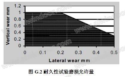 j)參照準面測量,試驗時合頁的水平和豎直磨損量累計不應超出圖G.2中的陰影區域范圍;