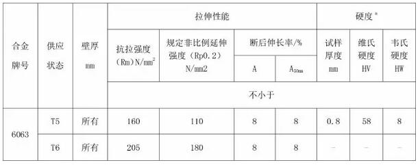 鋁型材類物料的力學(xué)性能要求如下: