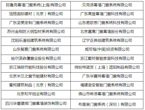 已入圍建筑門窗企業(yè)(品牌)24家: