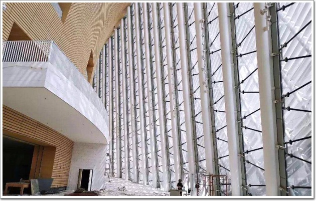 該項目采用的幕墻類型繁多,包括陶板幕墻、石材幕墻、陶棍幕墻、明框玻璃幕墻、百葉幕墻、鋁板幕墻、拉索(詞條“拉索”由行業大百科提供)幕墻,點支撐玻璃幕墻等十數種幕墻系統,總幕墻面積高達21.48萬平米,幕墻總造價2.2億元。然而,面對這樣的超級工程,各配套材料商也拼盡全力,將性能最佳的產品運用其中,包括亞鋁鋁材、皓晶玻璃、樂普陶板、安泰建筑膠堅朗五金等。
