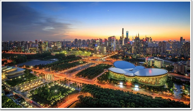 東方藝術中心由法國著名建筑師保羅?安德魯設計, 總占地面積23616平米,總建筑面積近40,000平方米,分為地下2層,地上5層,建筑總高為30米,從高處俯瞰,東藝由五個半球體建筑組合而成,五個球體依次為:正廳入口、演奏廳、音樂廳、展廳、歌劇廳,墨綠色的碗狀造型宛如一朵翩躚的“蝴蝶蘭”,尤其在夜晚,建筑頂部安裝的880多盞高科技嵌入式頂燈,會隨音樂廳美妙的旋律起伏變幻,將夜色中的上海東方藝術中心變得璀璨奇異、充滿動感。