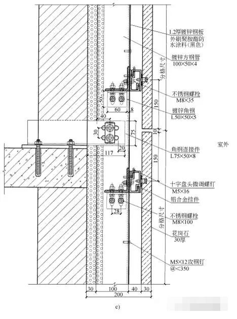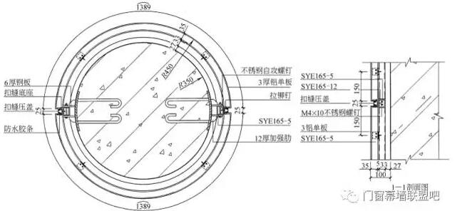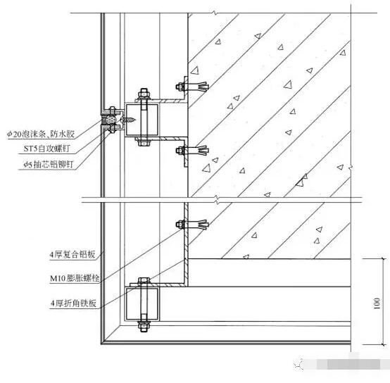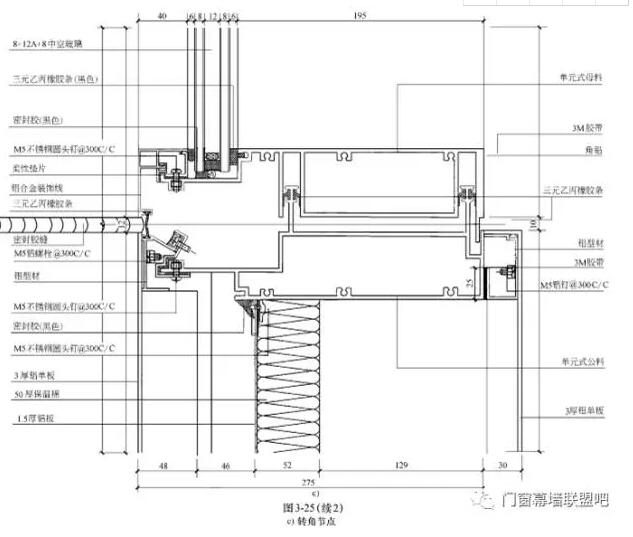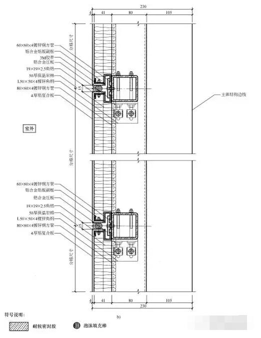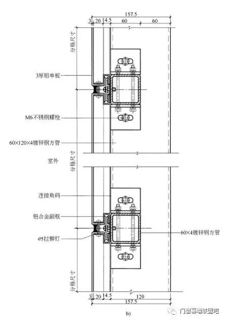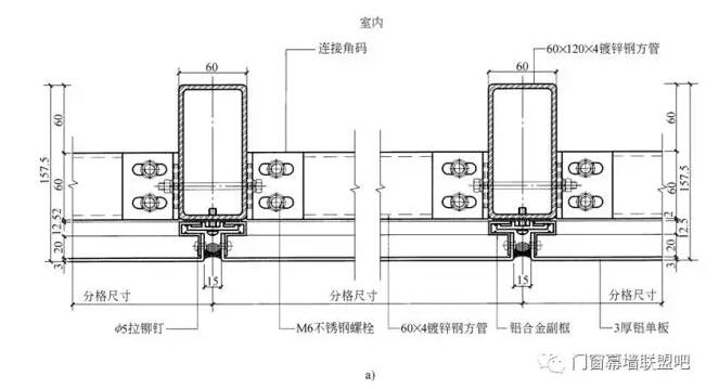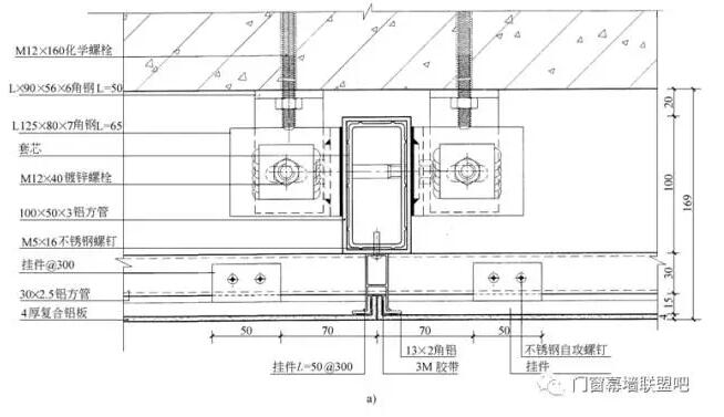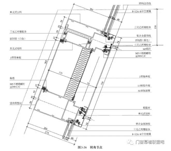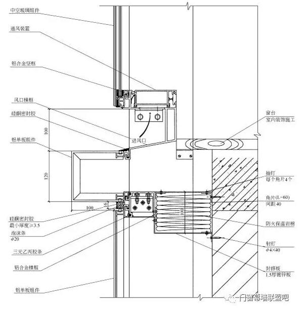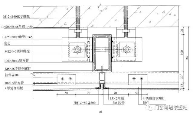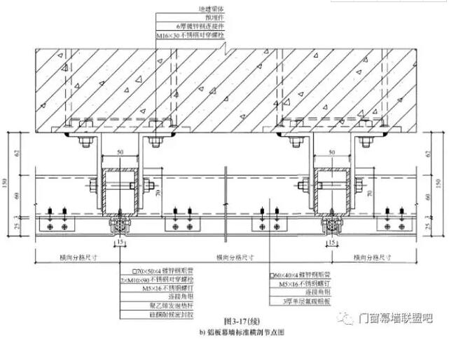 圖3-17a鋁板幕墻(詞條“鋁板幕墻”由行業大百科提供)標準豎剖節點
