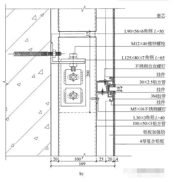 圖3-42b 鋁復合板幕墻標準縱剖節點