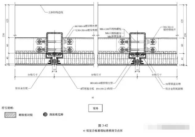 圖3-42a 鋁復合板幕墻標準橫剖節點