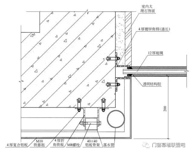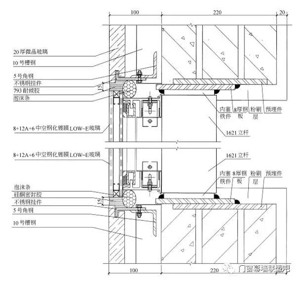 圖3-124 微晶玻璃與幕墻框架系統的連接