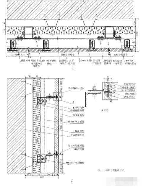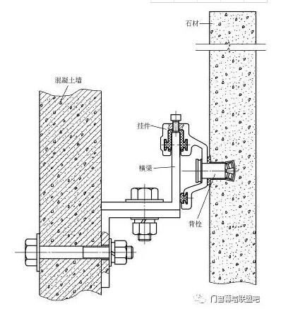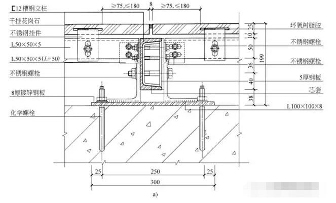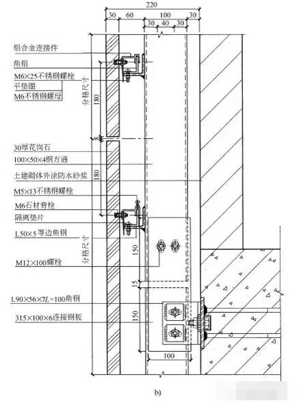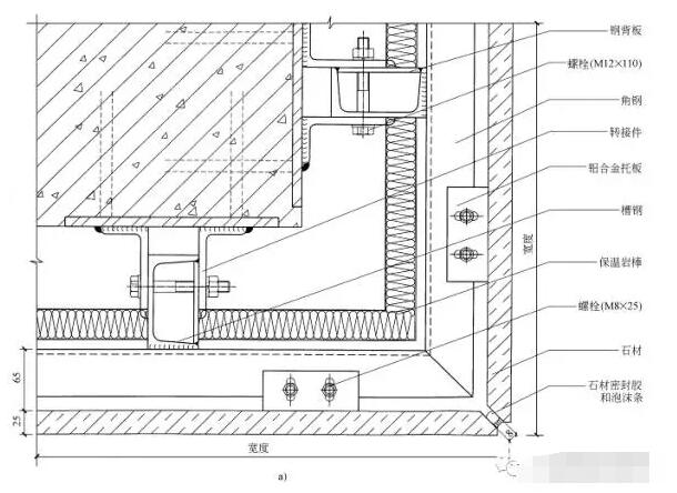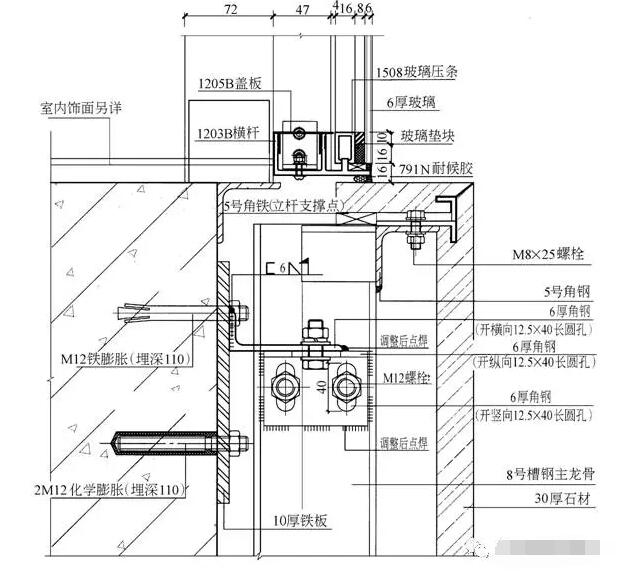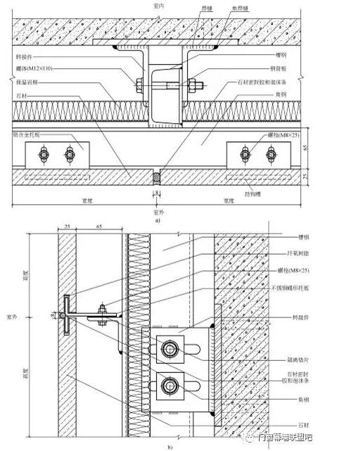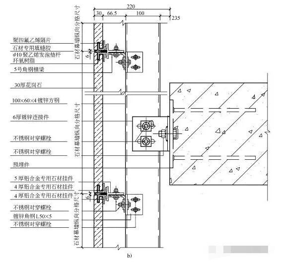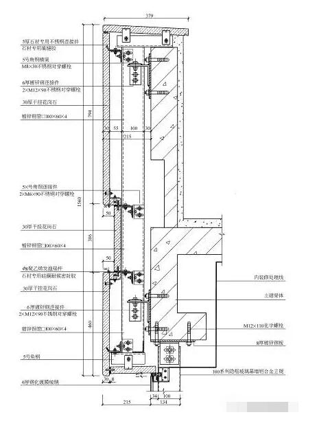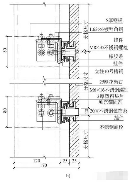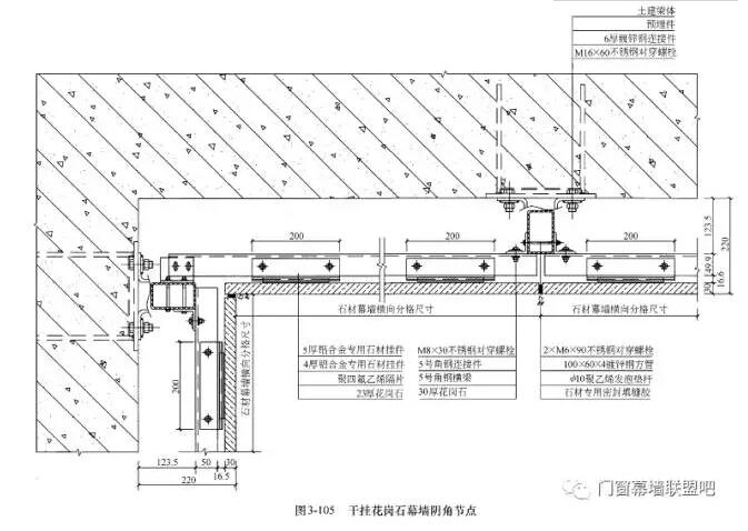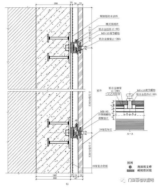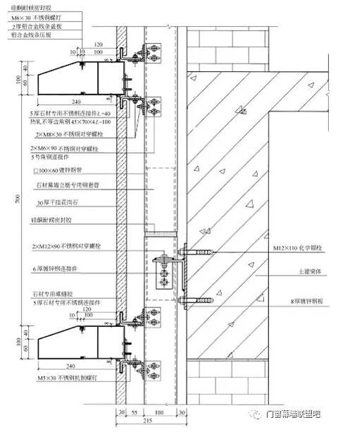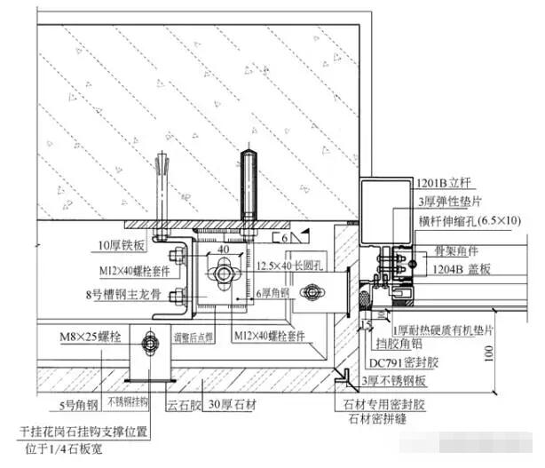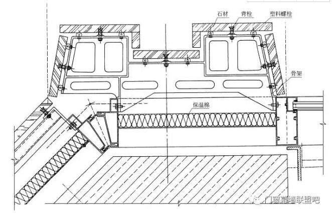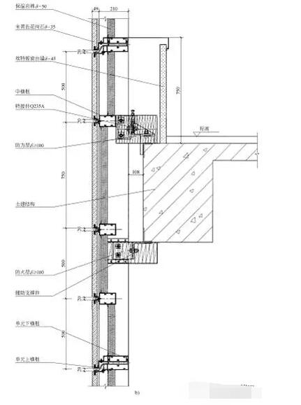 圖3-118石材幕墻與玻璃幕墻加接豎剖節點