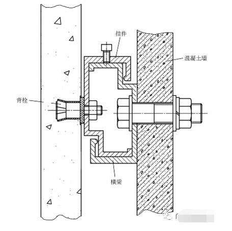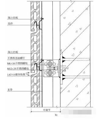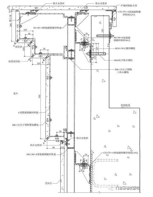 圖3-16 耳子與幕墻框格體系螺蚊聯接節點