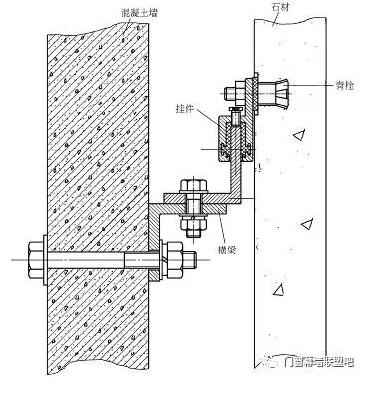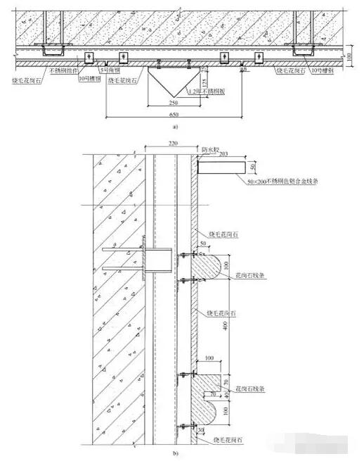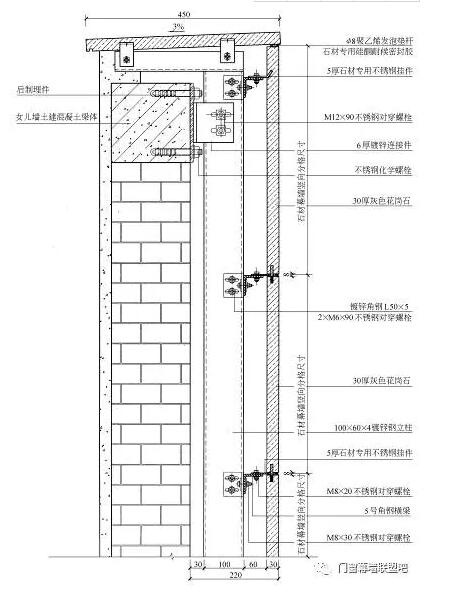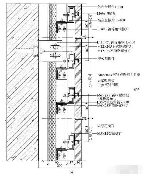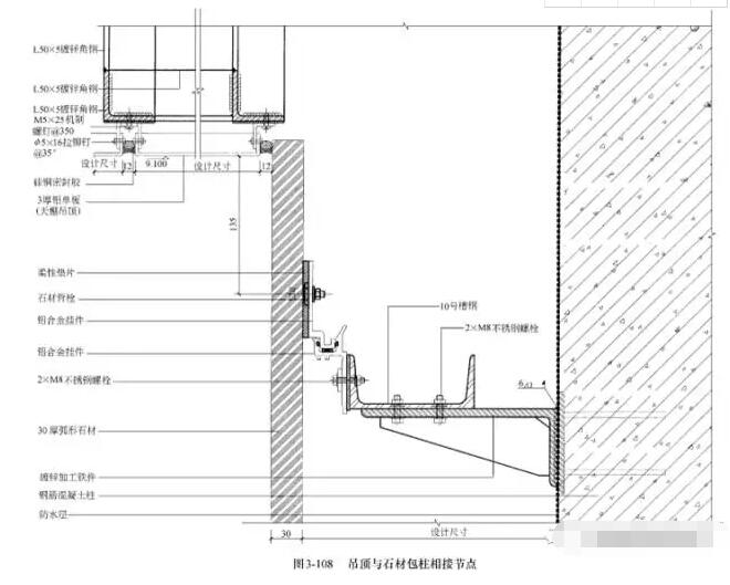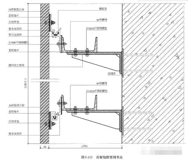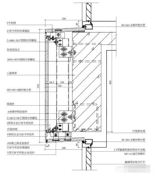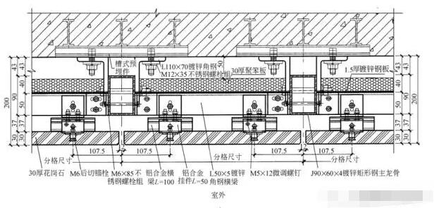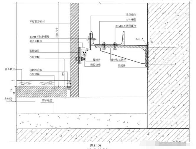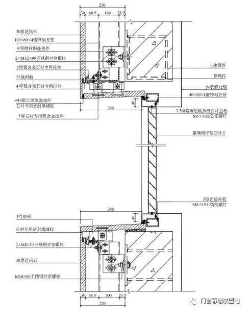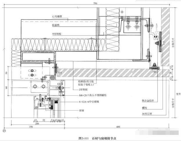 圖3-107 石材包梁與百頁窗連接豎剖節點
