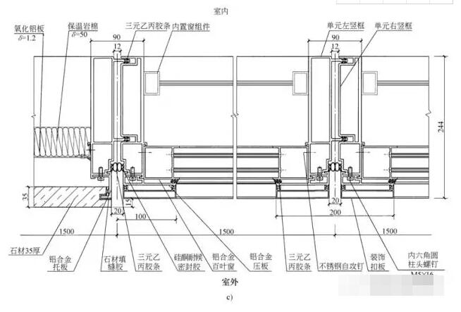 圖3-42c 鋁復合板幕墻標準縱剖節點