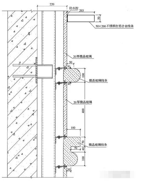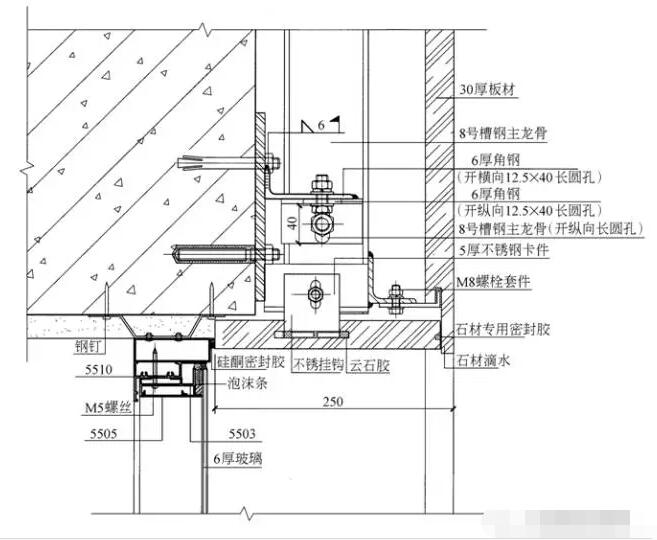 圖3-123 微晶玻璃與幕墻框架系統的連接