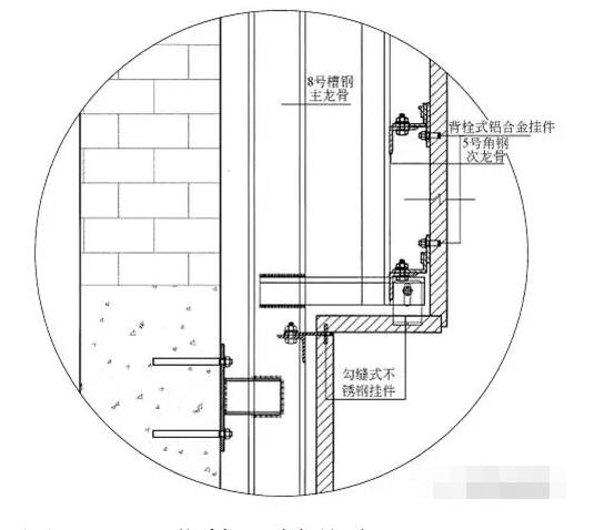 圖3-18 外插式單層鋁板與幕墻隔構體系節點