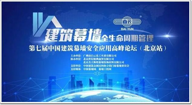 2018年7月27日在北京新疆大廈,由廣州市白云化工實業有限公司主辦,中國建筑金屬結構協會鋁門窗幕墻委員會特別支持,北京世紀膠典商貿有限公司、北京杰立輝煌幕墻裝飾材料有限公司聯合協辦的“第七屆中國建筑幕墻安全應用高峰論壇”隆重開幕,中國幕墻網Awindoor.com作為特約媒體,全程參與本次活動并報道。最全面、最精辟、最具深度的建筑幕墻(詞條“建筑幕墻”由行業大百科提供)全生命周期管理探索之旅由此開啟!