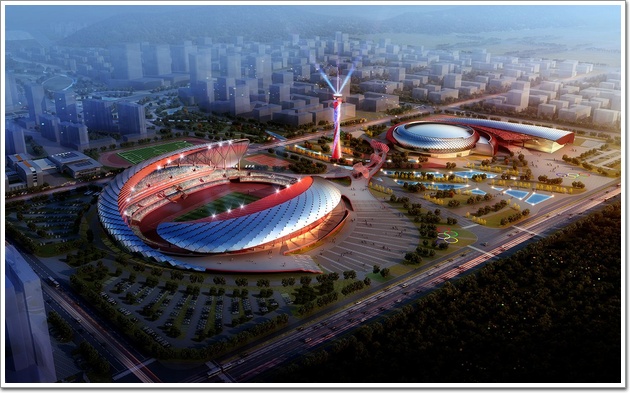 蚌埠市奧體中心項目由“一場、兩館、一校”組成,其中,“一場”為體育場,“兩館”為體育館和綜合館,“一校”為體校,整體布局與陶山山體的景觀相協調,集約利用土地。
