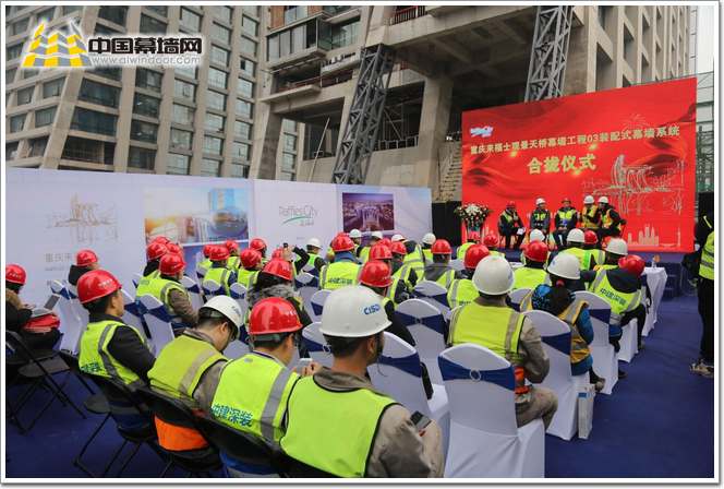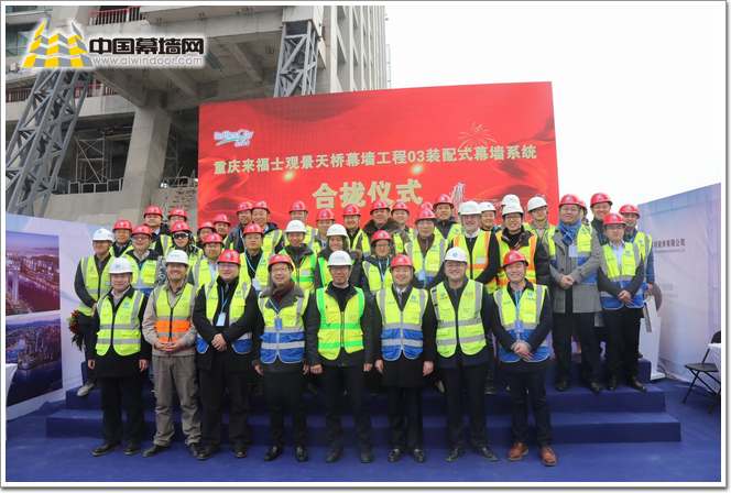 2019年1月14日,由中建深裝主辦的“重慶來福士觀景天橋幕墻工程03裝配式幕墻系統合攏儀式”在項目現場隆重舉辦,來自業主方、總包方和“觀景天橋”幕墻施工單位重慶凱德古渝雄關置業有限公司項目總經理吳煥忠和中建三局集團重慶分公司副總經理張興志、中建八局西南公司重慶經理部副經理陳斌、中建深圳裝飾有限公司幕墻分公司總經理李鳳輝、設計院院長程希奇;特邀領導重慶市建筑裝飾協會會長劉冰野、重慶市建筑節能協會執行會長曹勇、重慶兩江新區建設管理局勘設辦副主任岳希峰、重慶賽迪工程咨詢有限公司總監陳華峰等領導。以及萬科重慶、重慶高科、悅來集團悅、利比有限公司、薩夫迪建筑設計咨詢(上海)有限公司、中國建筑科學研究院、凱里森、中機中聯、重慶長廈安基等合作單位領導。