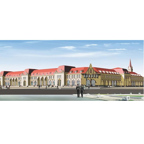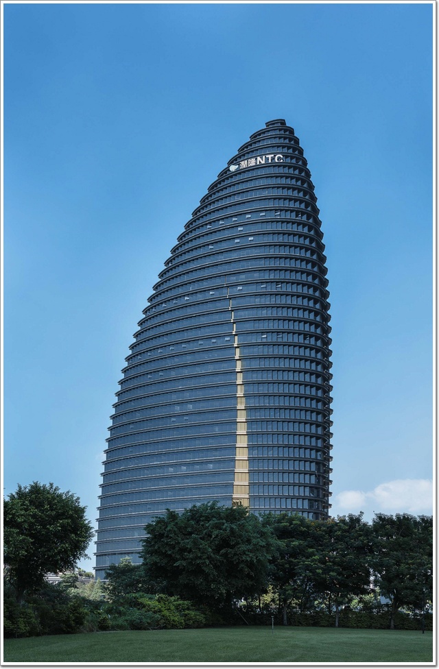 與華潤總部大廈不同的是,NTC商貿中心只是繼承了春筍的輪廓,并非以完整的春筍形態出現,不過這絲毫不影響其建筑的整體美觀。大廈外立面采用建筑采用橫向雨篷配合折疊幕墻的做法,起伏有致,以突顯其地域性,大廈底部正面三分之一處鑲嵌金屬板玻璃幕墻,打破整體格局,凸顯時尚。