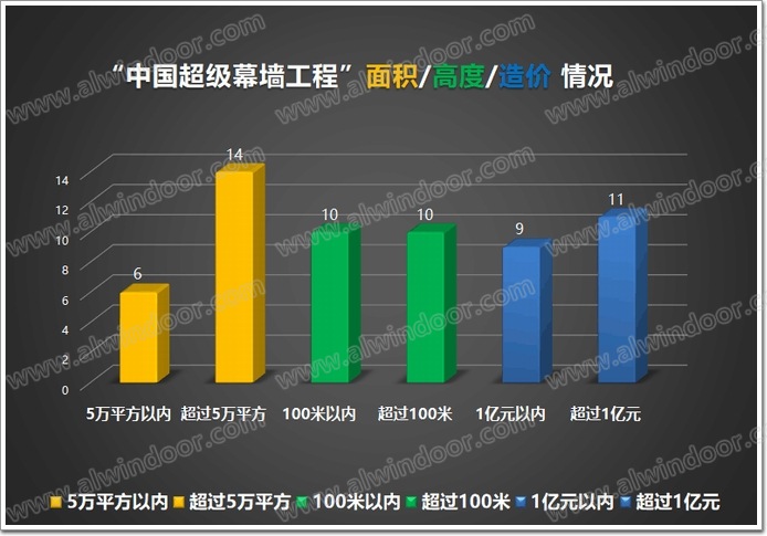 入圍工程幕墻(面積、高度、造價)情況