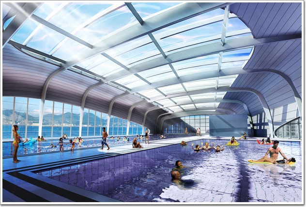 香港堅尼地游泳館于去年初落成,位于堅尼地城海旁及城西道的交界處,在西祥街北的西端,總建筑面積11782平米。該游泳館包含兩個50米長室內和室外標準泳池,一個室外嬉水池和戶外按摩浴池,以及一個室內訓練泳池。與此同時,市民還可以享受在建筑頂棚蔭蔽下的開放花園。
