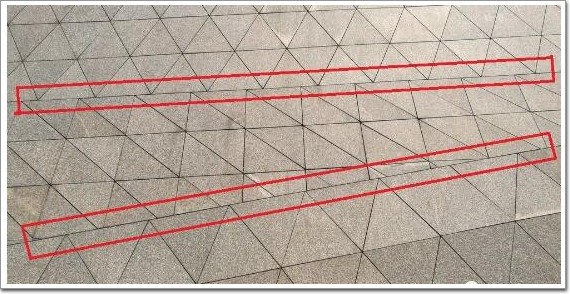 三角形的石板在轉折的地方毫無對接關系,甚至出現補丁般的狹窄的一小條。