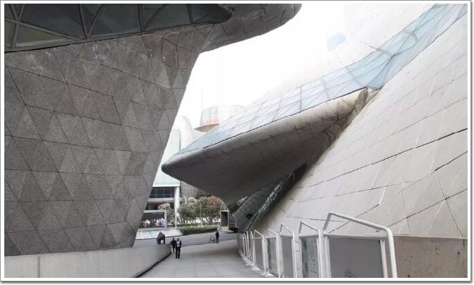 現實中的大劇院是什么形象呢?說實話很難拍到一張看得過去的照片。從網絡上(包括扎哈事務所的官網)搜索,除了掩飾了真相的夜景外,也是基本找不到什么可看的日景照片!
