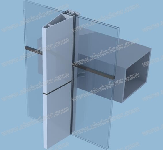 大裝飾條鋁合金立柱寬度150mm,高度500mm,其中位于室外玻璃面之外的為415mm,室內只有65mm的鋁合金扣蓋,最大程度地節省了室內空間,也較好地提升了室內的視覺效果。從室外看,間距約1800mm、突出玻璃面415mm的大裝飾條形成了一個直紋曲面的立面,實現了建筑的幾何邏輯。由于大裝飾條兼作主要的結構構件,而且由于采用了無橫梁設計,面板固定在左右兩側立柱之上,面板的受力方式為對邊簡支板,本項目無橫梁大裝飾條鋁合金立柱的設計也較大地降低了工程成本(如圖3)。