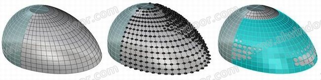 在空間異型項目中,傳統的二維軟件已經無法滿足此類項目的設計,加工,定位,安裝等要求,通過BIM技術的介入,實現三維可視化建模,指導設計出圖。并且在設計階段進行合理優化,有效降低材料加工以及施工難度,縮短施工周期,節約材料以及施工成本。尤其是異型雙曲玻璃幕墻,由于玻璃材質本身特性,給加工施工帶來很大難度,雙曲玻璃板塊加工成本高昂,成品率低,加工精度(詞條“加工精度”由行業大百科提供)誤差大,運輸,安裝成本高。并且與板塊相關的所有鋁合金輔材都需要特殊加工。綜合上述所有因素,在雙曲幕墻設計階段就需要對幕墻進行合理優化,降低施工難度,節約材料成本,縮短施工周期,提高施工質量。寧波北侖中國港口博物館A穹頂,該穹頂面積1411㎡。包含雙曲面板(詞條“面板”由行業大百科提供)415塊,796㎡;單曲面板162塊,615㎡。對原模型進行翹曲只分析,控制翹曲值范圍,通過平面擬合雙曲面的方式有效降低加工施工難度,節約材料成本與施工成本。