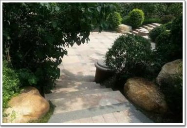 景觀石作為效果的定睛材料,其設置沒有一個固定的模式,主要體現于自然,美觀。如圖,其和鋪裝面的結合,不能刻意最求一個形式。按自然界各種形式出現。主要營造出,這塊石頭原本就在這里的效果。
