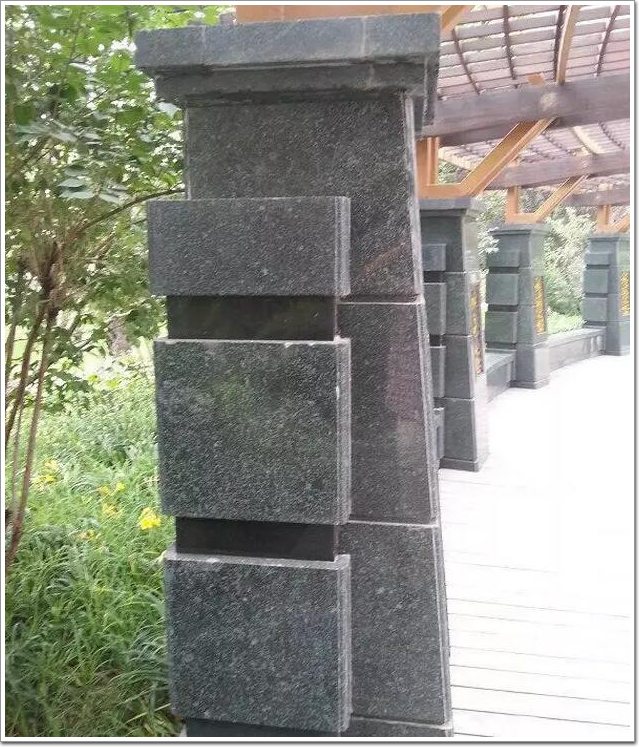 石材的選料:這在疊山中有著非常重要的作用。選取不當,與周圍環境不協調,便達不到預期的效果。長期暴露在山體表面,風化層有自然花 紋,側面又有自然的水紋,疊出的山石駁岸用“折帶皴”手法來做,會顯得 很自然,因石料的水紋線和水平線成一平行線,故讓人感覺這石頭就仿佛自然長在河邊的,有一種被水浸蝕的痕跡。