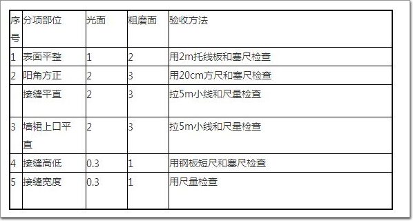 7-1、表面平整度 誤差1~3mm, 用2m靠尺和楔形塞尺檢查;