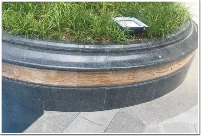 此類的花池收邊,首先石材的規格顏色符合設計要求,石材切割按給定的半徑和角度定型加工,石材的厚度控制一致。